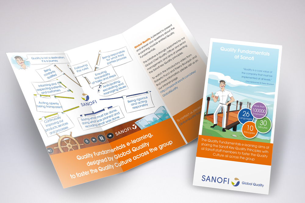 Für die Abteilung Quality Fundamentals wurde ein Flyer mit den wesentlichen Aussagen, eben den "10 Fundamentals" entwickelt und umgesetzt. Die Grafiken waren Screenshots aus einer Software und wurden für den Druck aufbereitet. Nach der Fertigstellung der englischen Version wurde noch eine französische Sprachfassung erstellt.